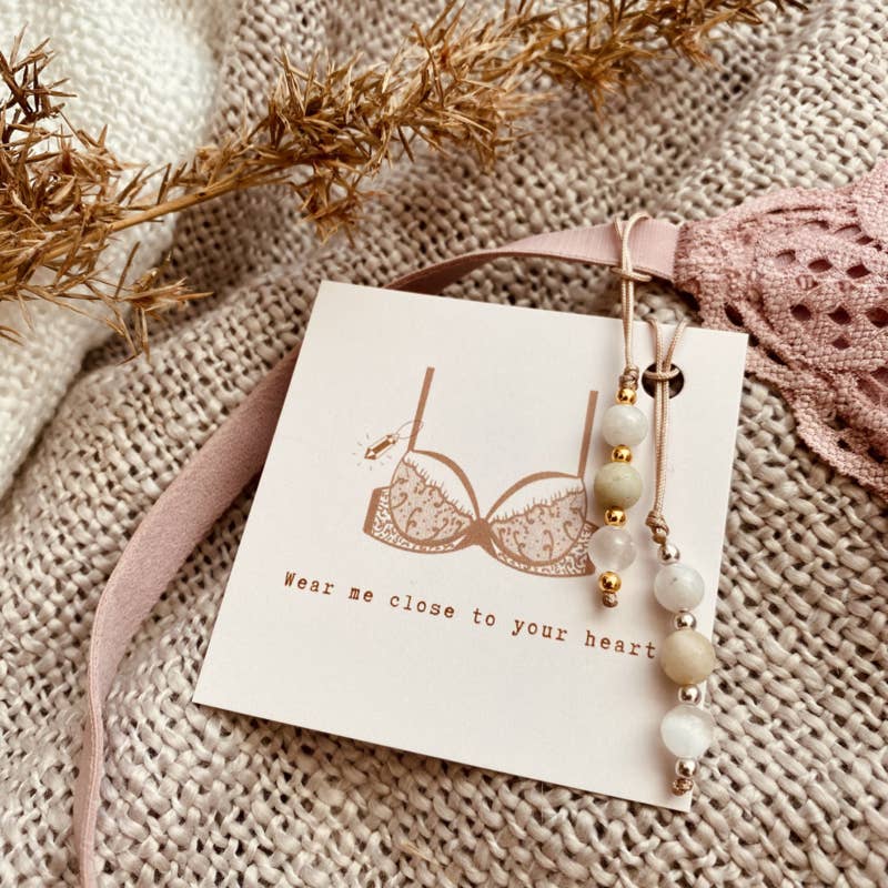 Wear me close to your heart! Hoe fijn om edelsteentjes op deze manier bij je te dragen. Deze hangertjes zijn speciaal gemaakt om aan het bandje van je BH te hangen.