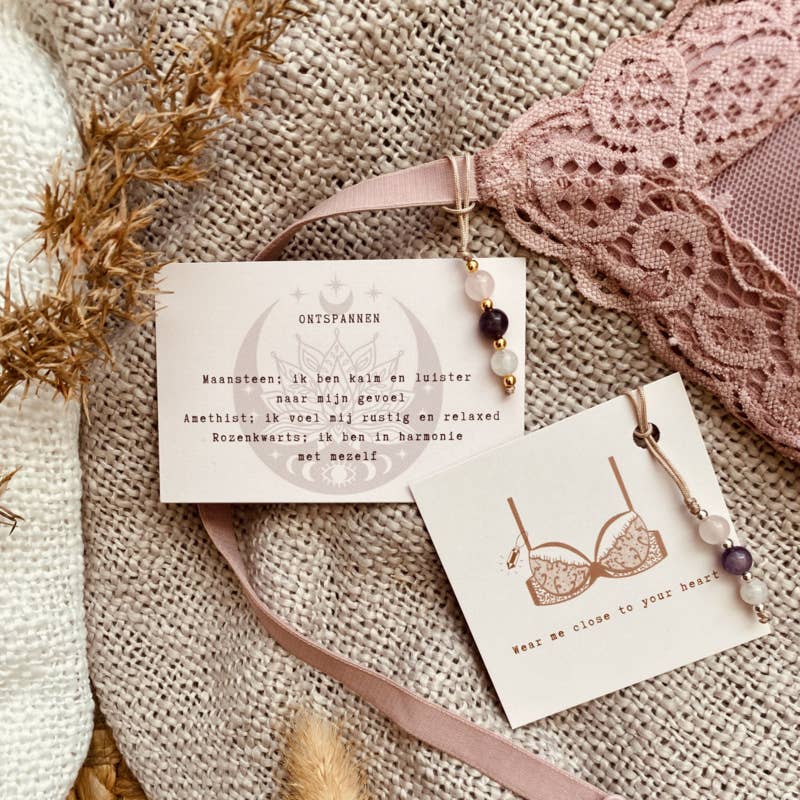 Wear me close to your heart! Hoe fijn om edelsteentjes op deze manier bij je te dragen. Deze hangertjes zijn speciaal gemaakt om aan het bandje van je BH te hangen.